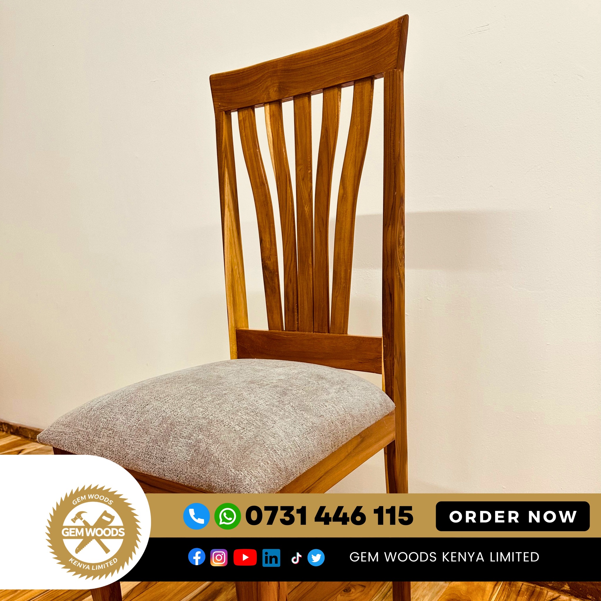 Add timeless elegance and durability to your dining space with our Hardwood Dining Chairs, expertly crafted from premium Sudan Teak, Mahogany, or Mvule. These hardwoods are known for their strength, beautiful natural grain, and long-lasting performance, making them ideal for high-quality furniture.
